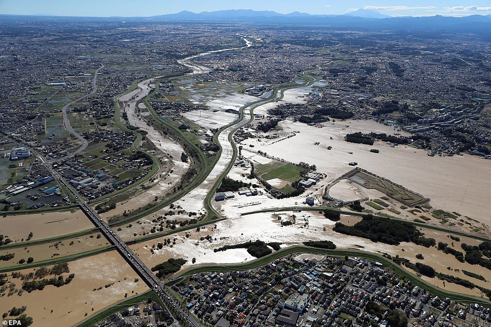 Đài NHK cho biết, 14 con sông ở nước này đã ngập nước, một số nơi đã tràn bờ. Ảnh: EPA