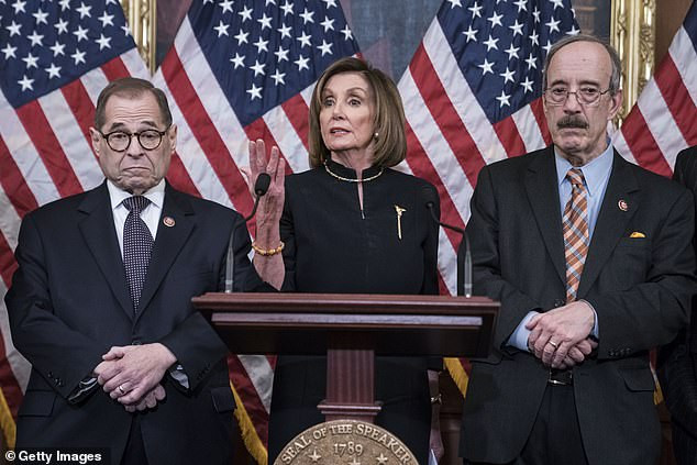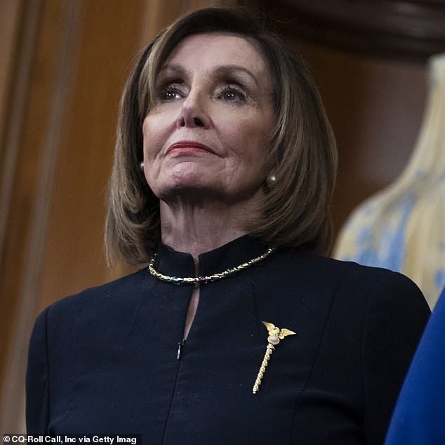 Trước đó, trong phiên bỏ phiếu luận tội ông Trump tại Hạ viện ngày 18/12/2019, bà Nancy Pelosi (đảng Dân chủ) đã mặc một chiếc váy màu xanh đậm thanh lịch, đi kèm một chiếc dây chuyền vàng.