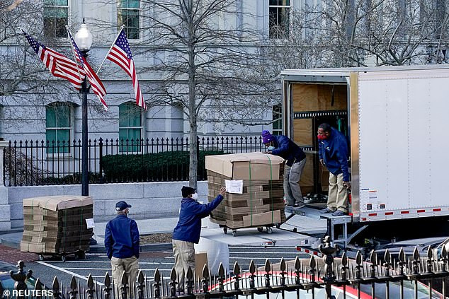 Từ thứ Tư, 13/1, nhiều xe tải vận chuyển đồ đạc đã xuất hiện bên ngoài tòa nhà Eisenhower (thuộc khuôn viên Nhà Trắng).