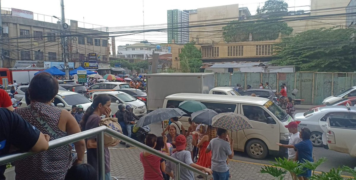 Giao thông bên ngoài một trung tâm mua sắm ở thành phố Cagayan de Oro hiện đang ở tình trạng tắc nghẽn sau trận động đất mạnh. Ảnh: Twitter