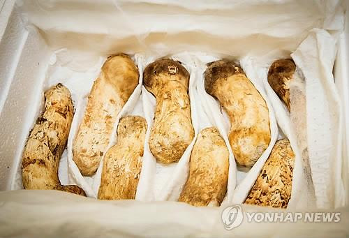 Nấm thông quý do phía Triều Tiên gửi tặng Hàn Quốc. Ảnh: Yonhap
