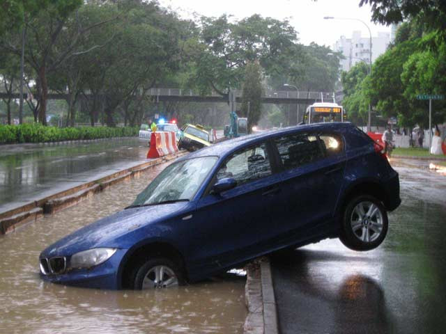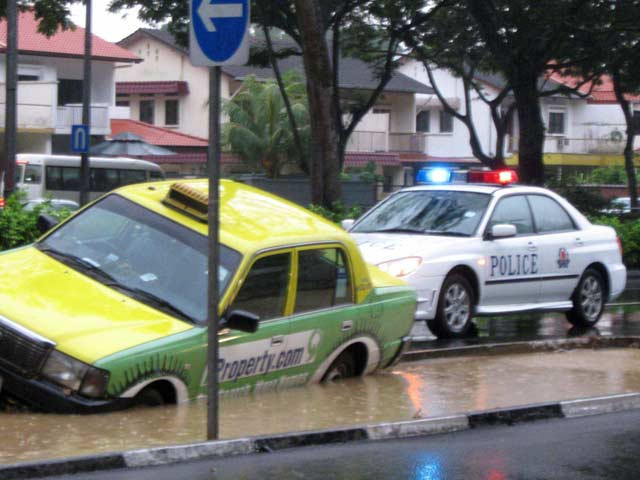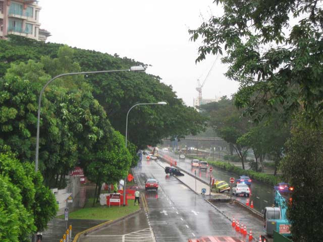 Trong lúc mưa rơi nặng hạt, giao thông hỗn loạn tại một số tuyến đường như Bukit Timah, Jalan Haji Alias, Newton Circus, Jalan Taman, Telok Kurau, Braddell, Upper Thomson…