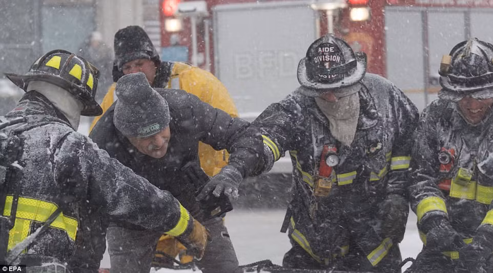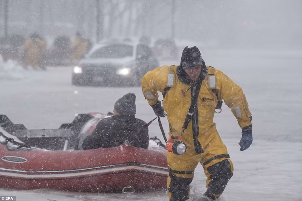 Lực lượng cứu hỏa Boston không ngừng nhận được điện thoại kêu cứu từ các tài xế mắc kẹt trên những con đường ngập sâu. Ảnh: EPA