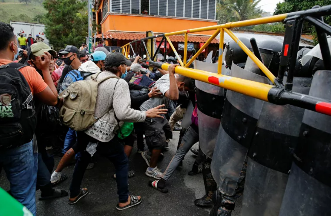 Theo Reuters, khoảng 7.000 đến 8.000 người di cư đã từ Honduras vào Guatemala trong những ngày qua. Đoạn video từ khu vực này cho thấy hàng nghìn người đã cố vượt qua hàng rào cảnh sát sau khi băng qua biên giới một cách trái phép.