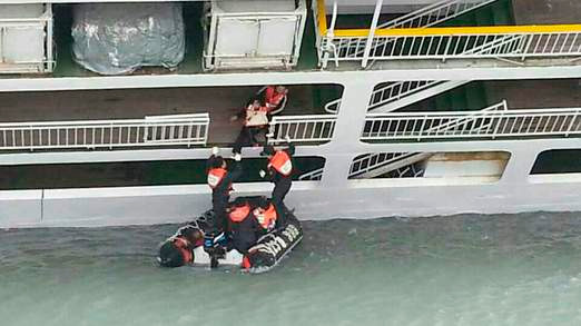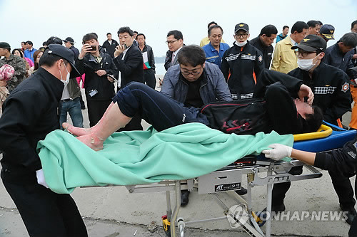 Hai người được xác nhận đã thiệt mạng, trong đó một người được tìm thấy chết bên trong tàu, còn người kia tử vong ngay sau khi được đưa đến bệnh viện trên đất liền. Ảnh: Yonhap