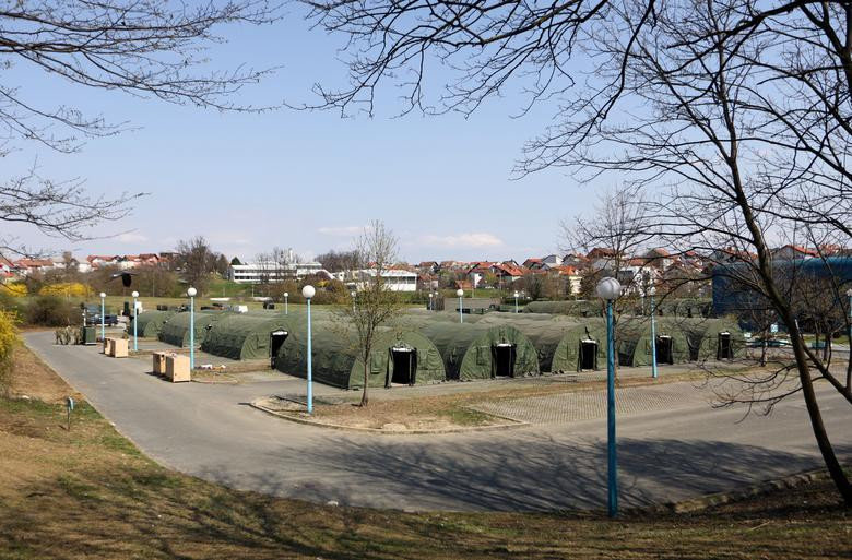 Lều quân sự được dựng lên làm nơi điều trị cho bệnh nhân COVID-19 bên ngoài bệnh viện Dubrava (Zagreb, Croatia).