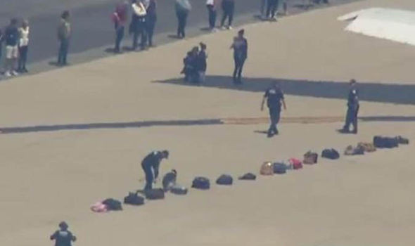Máy bay đáp xuống một khu vực riêng biệt của sân bay. Chó nghiệp vụ cũng được cử tới hiện trường.