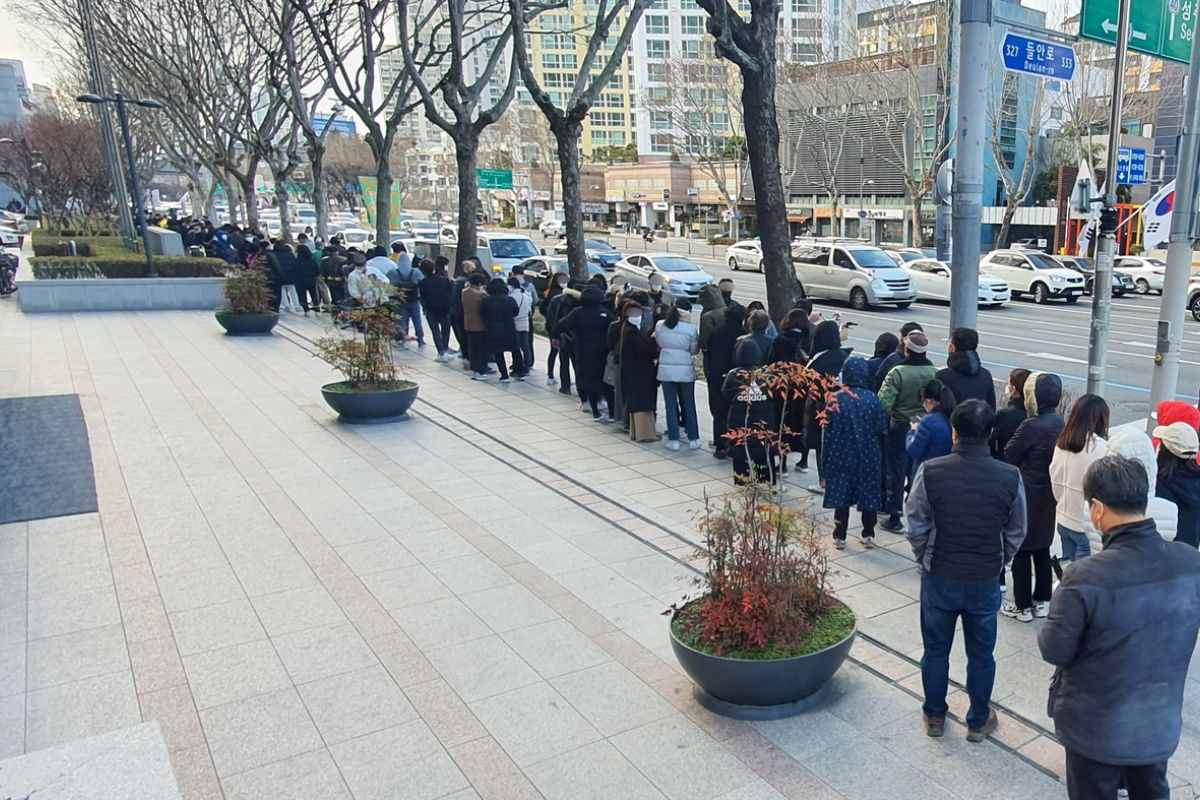 Trong ảnh, người dân xếp hàng dài mua khẩu trang tại một bưu điện ở Daegu, Hàn Quốc ngày 27/2. Tính đến chiều 4/3, Hàn Quốc đã ghi nhận tổng cộng 5.621 ca mắc Covid-19, với 33 ca tử vong. Ảnh: EPA-EFE