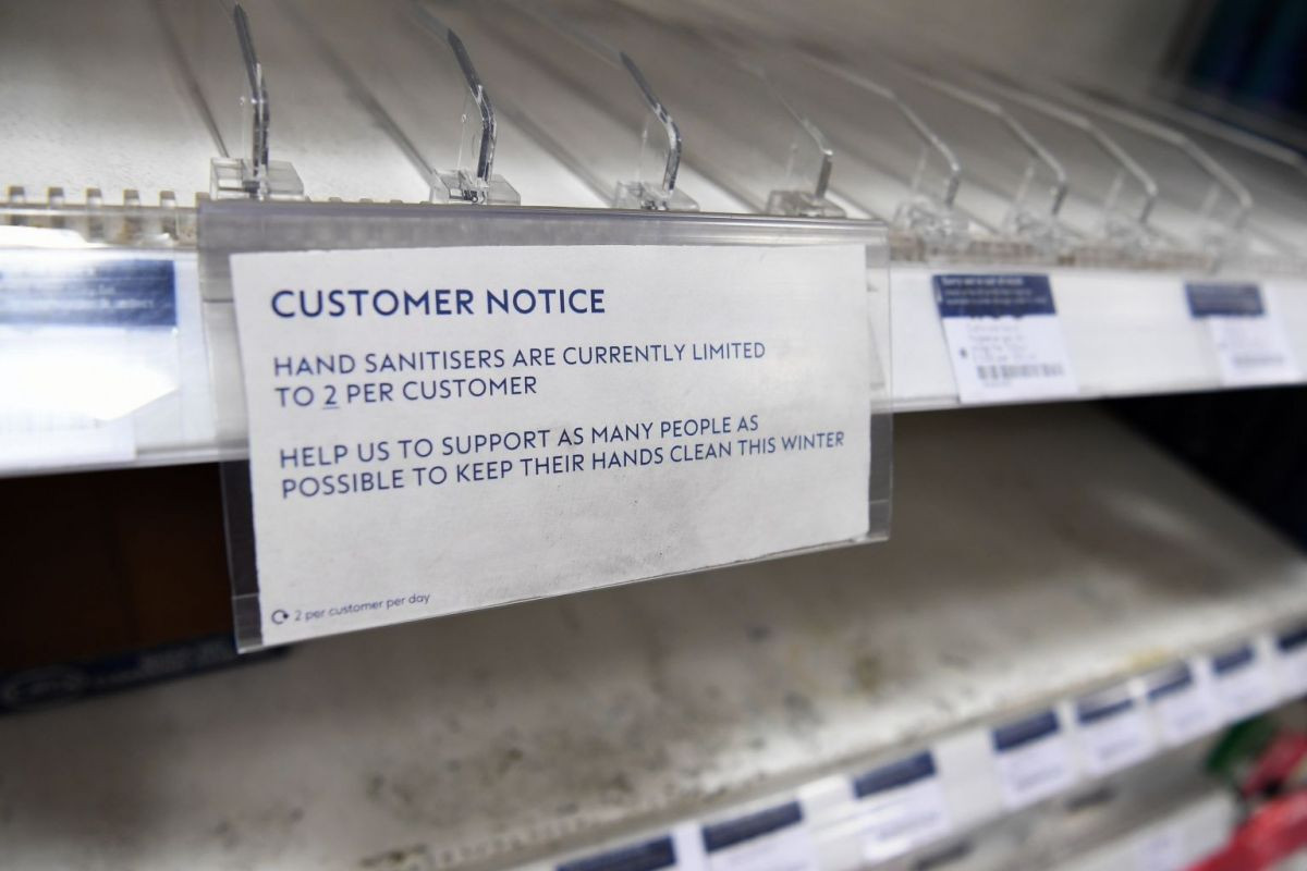 “Mỗi người chỉ được mua tối đa 2 chai nước rửa tay”, một siêu thị ở London (Anh) hôm 3/3 thông báo. Anh hiện có 51 ca mắc Covid-19. Ảnh: EPA-EFE