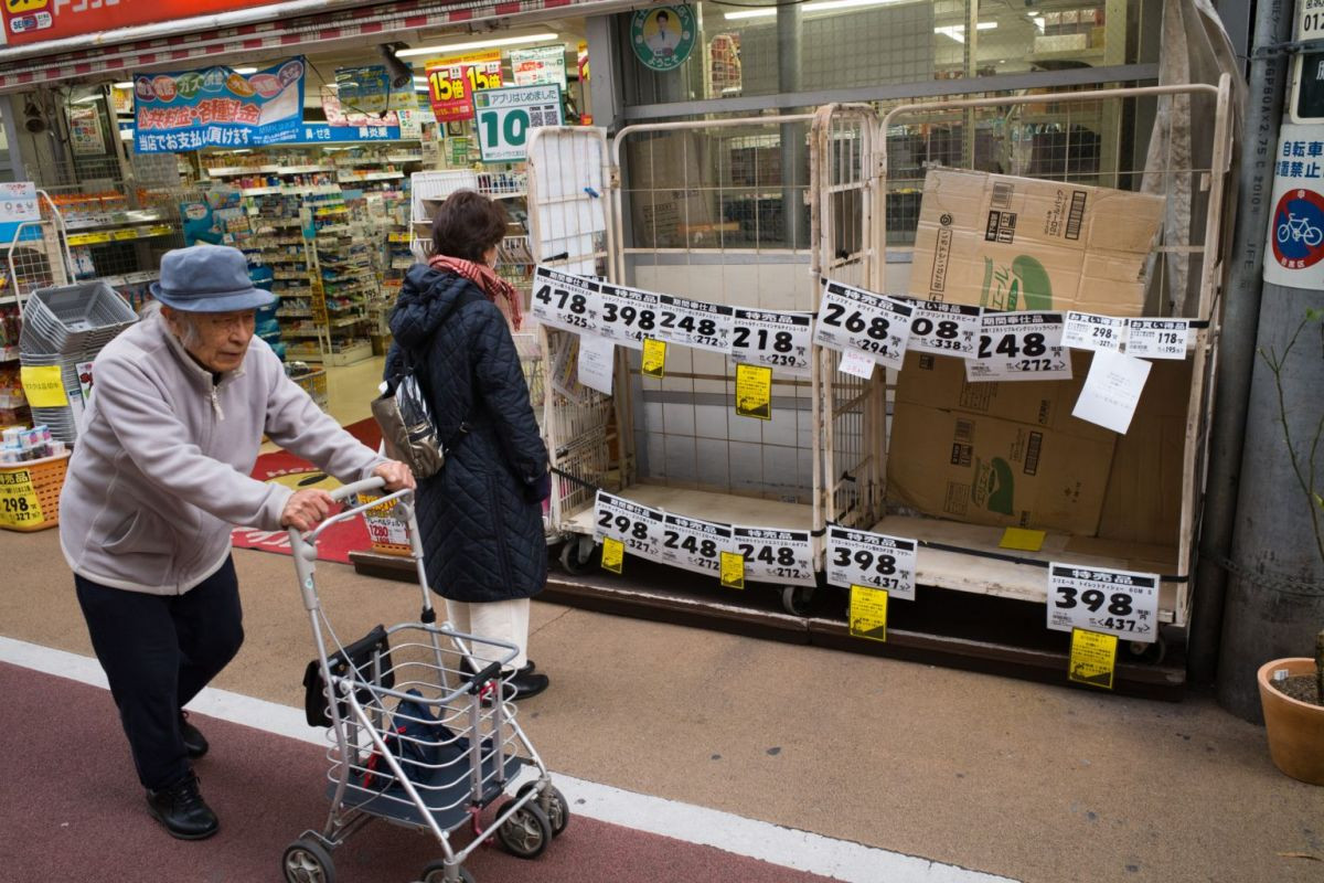 Không chỉ khẩu trang, mà các mặt hàng diệt khuẩn cũng vô cùng khan hiếm ở thủ đô Tokyo. Nhật Bản hiện ghi nhận 295 ca mắc Covid-19 (trừ số ca bệnh trên tàu du lịch Diamond Princess), với 6 ca tử vong. Ảnh: Bloomberg