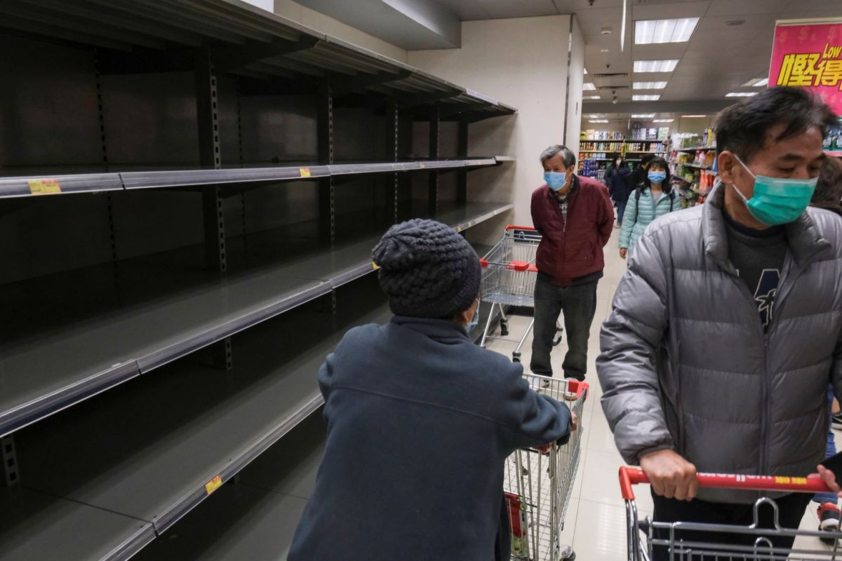 Gian hàng giấy vệ sinh trống trơn trong một siêu thị ở Hồng Kông (Trung Quốc) ngày 6/2. Hồng Kông hiện có 102 ca mắc Covid-19, với 2 người tử vong. Ảnh: Reuters