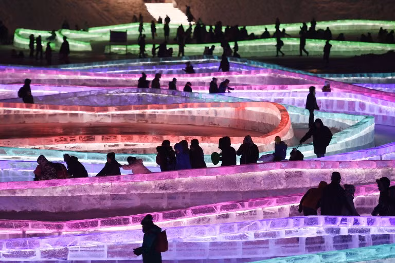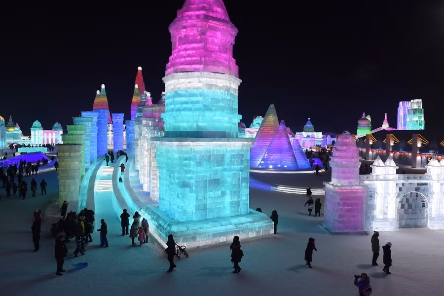 Theo dữ liệu từ cơ quan quản lý du lịch, lễ hội băng đăng đã mang về doanh thu 28,7 tỉ nhân dân tệ cho thành phố Cáp Nhĩ Tân trong năm 2017. Ảnh: AFP