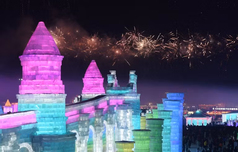 Năm nay, lễ hội mở cửa đến cuối tháng Hai và dự kiến sẽ thu hút hàng trăm ngàn du khách vào dịp Tết Nguyên đán. Ảnh: AFP