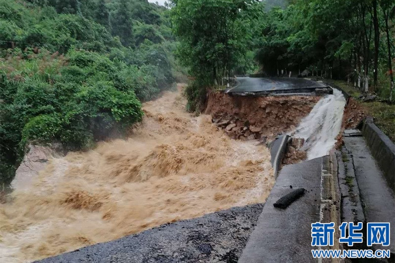 Kể từ tháng 6, các trận mưa lớn liên tục đã phá hủy phần lớn miền nam Trung Quốc và mực nước của nhiều con sông ở các khu vực bị ảnh hưởng vượt quá mức nguy hiểm. Ảnh: News.cn, tỉnh lộ S225 tại Trùng Khánh bị sạt lở nghiêm trọng.