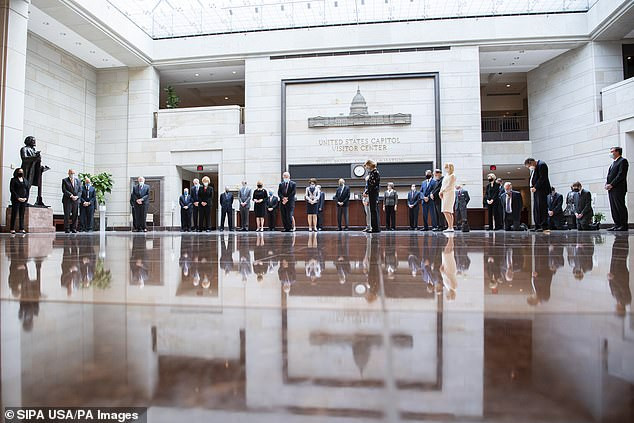 Những nghị sĩ khác tuy không quỳ gối nhưng cũng thành tâm cúi đầu tưởng niệm trong im lặng.