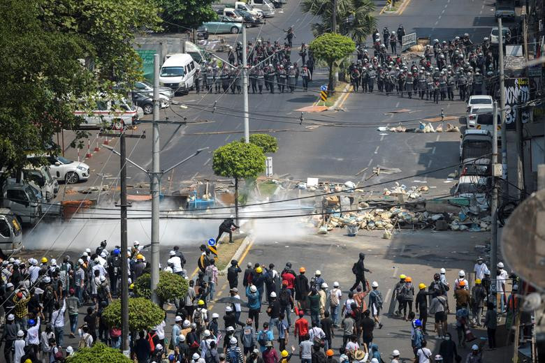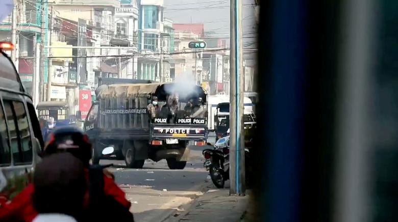 Khoảng 10 xe cảnh sát và quân đội đã được triển khai hôm thứ Hai tại một giao lộ ở Yangon, nơi những người biểu tình đã đụng độ với lực lượng an ninh một ngày trước đó, một nhân chứng nói với Reuters.