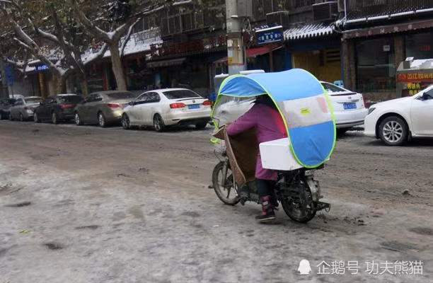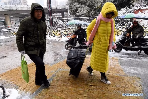 Người dân Hoài An, Giang Tô, mang theo “chăn” ra đường vì quá lạnh. Ảnh: QQ