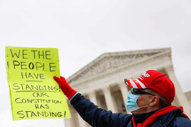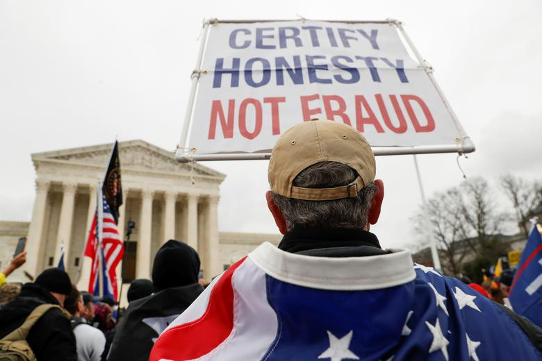 “Washington đang tràn ngập những người không muốn chứng kiến chiến thắng bầu cử bị đánh cắp bởi những người ủng hộ đảng Dân chủ”, ông Trump viết trên Twitter. “Đất nước của chúng tôi đã quá chán ngán, họ sẽ không chịu đựng nữa! Chúng tôi có thể lắng nghe các bạn từ Phòng Bầu dục. Làm cho nước Mỹ vĩ đại trở lại!” Ảnh: Reuters