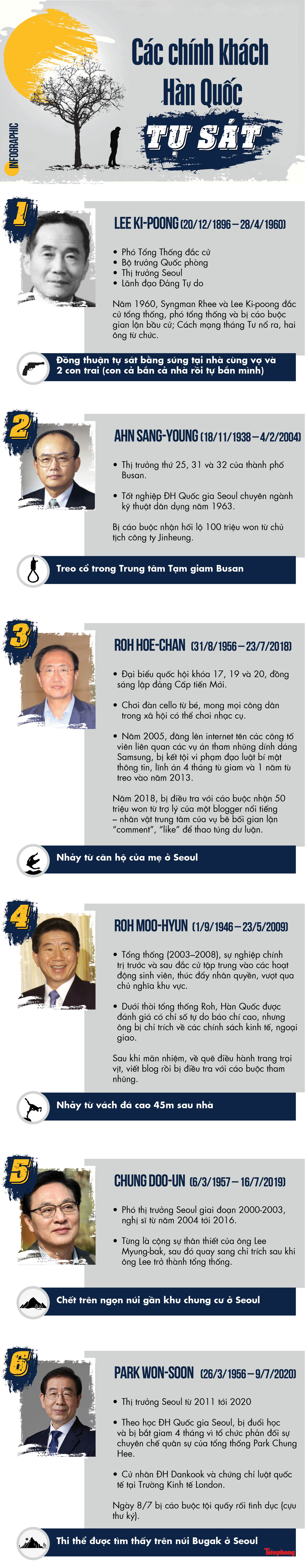 TPO - Những năm qua, không ít chính trị gia Hàn Quốc, từ thị trưởng đến phó tổng thống, cựu tổng thống nhảy lầu, treo cổ, lao mình khỏi vách núi... Vì sao vậy?