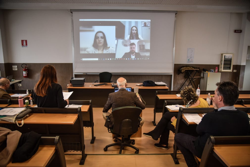 Một đại học ở Milan trao bằng Y tá cho sinh viên trong lễ tốt nghiệp trực tuyến. Trước đó, buổi lễ dự kiến sẽ diễn ra vào tháng Tư. Nhưng lãnh đạo trường đại học đã quyết định trao bằng sớm hơn để các y tá có thể lập tức tham gia ứng phó với dịch Covid-19. Ảnh: EPA