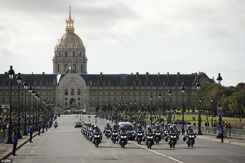 Tang lễ chính thức của cố Tổng thống Pháp có sự tham dự của Tổng thống Emmanuel Macron, Chủ tịch Ủy ban Châu Âu Jean-Claude Juncker, Tổng thống Nga Vladimir Putin, cựu Tổng thống Pháp Nicolas Sarkozy và Francois Hollande, cựu Tổng thống Mỹ Bill Clinton,…