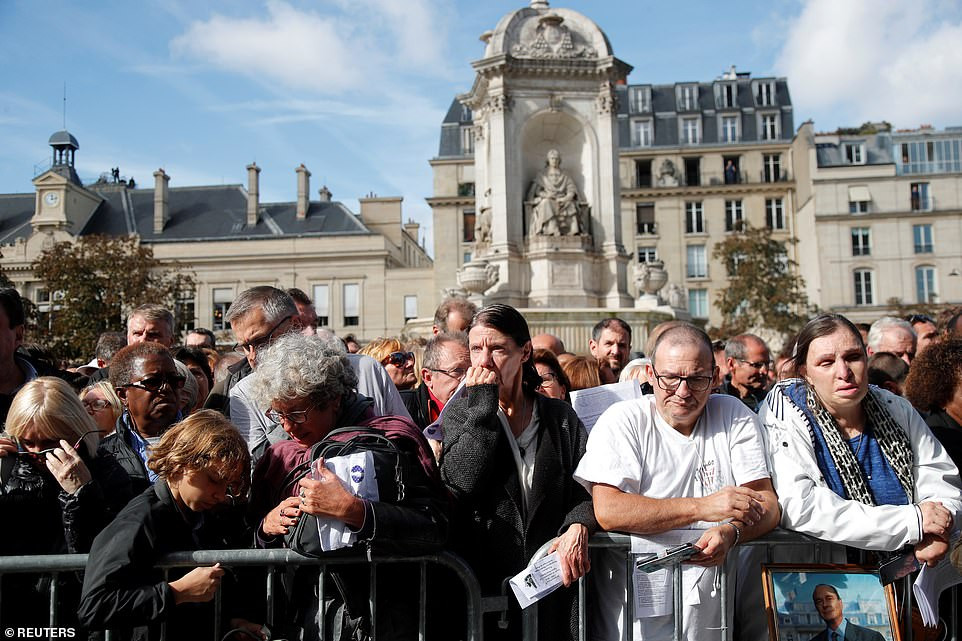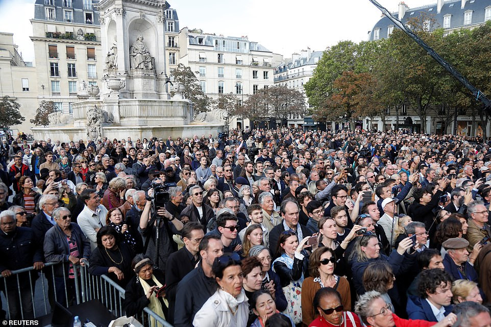 Đông đảo người dân Pháp đứng viếng ông Chirac từ xa. Ảnh: Reuters