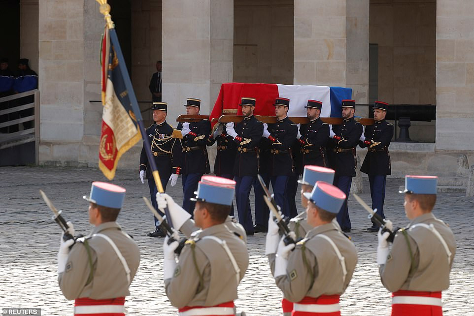 Trước đó, Tổng thống Pháp Emmanuel Macron đã chủ trì một nghi thức quân sự tại khu tưởng niệm Invalides, gần lăng mộ Hoàng đế Napoleon, và dàn quân nhạc chơi bản “La Marseillaise” trước khi quan tài ông Chirac được đưa đến địa điểm tổ chức tang lễ.