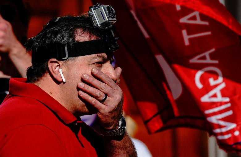 Một người ủng hộ ông Trump buồn bã đi biểu tình ở Madison. Ảnh: Reuters