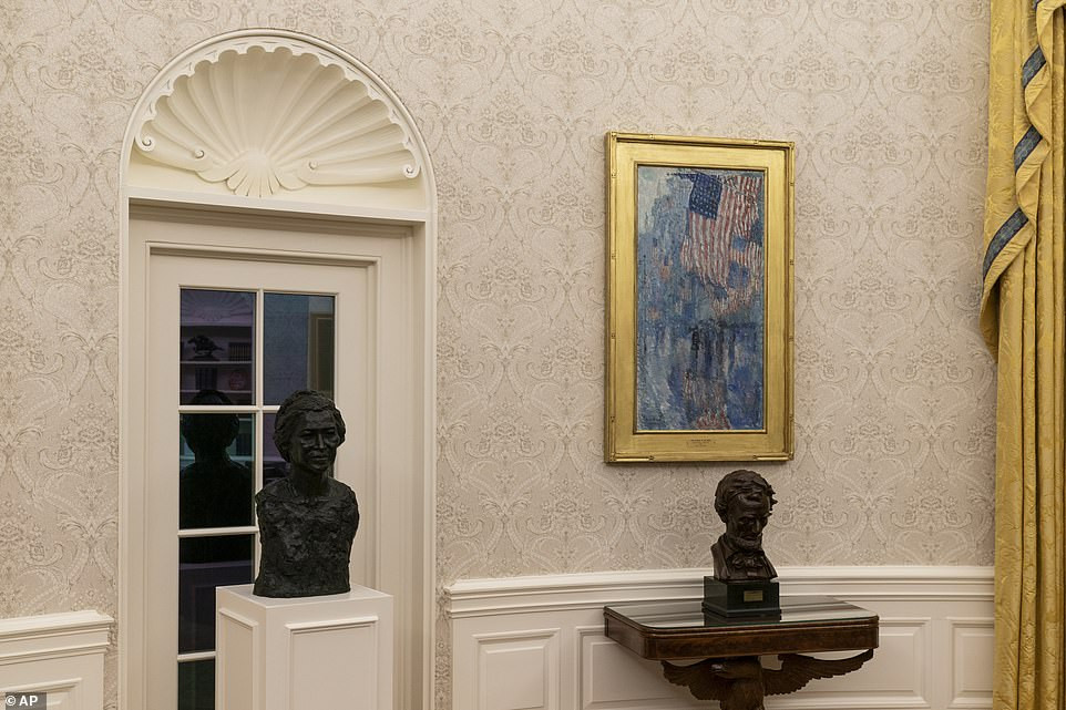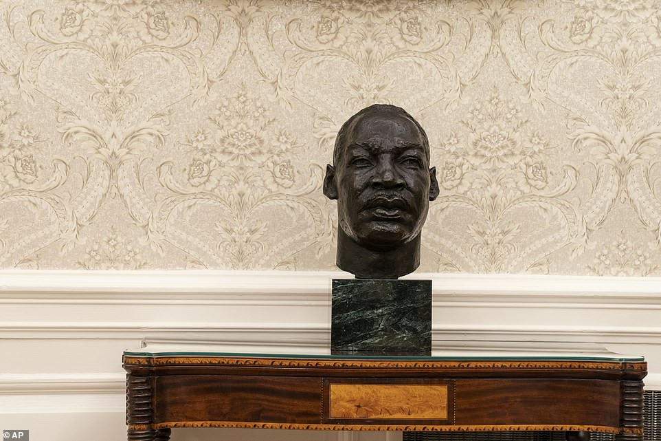 Ông Trump cũng thực hiện theo một trong những lời hứa ban đầu của mình, khi ông trả lại bức tượng bán thân của Winston Churchill về vị trí cũ. Trước đó, ông Obama đã bỏ bức tượng này để thay thế bằng bức tượng bán thân của Martin Luther King Jr.