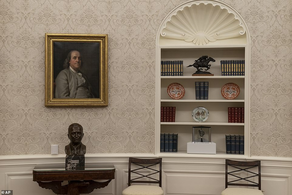 Theo Daily Mail, phòng Bầu dục được bài trí lại vào ngày 20/1, để chuẩn bị cho buổi làm việc đầu tiên của ông Joe Biden với tư cách Tổng thống Mỹ.