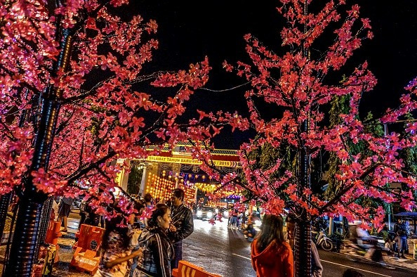 Người dân vui vẻ với không khí chào đón Tết cổ truyền của những người gốc Hoa sống ở Indonesia.