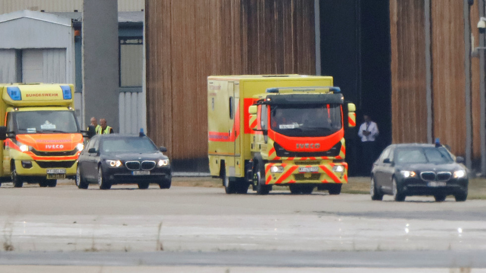 Suốt hành trình từ Nga đến Đức, ông Navalny ở trong tình trạng hôn mê. Tại Đức, ông được tiếp tục điều trị ở bệnh viện Charite (Berlin). Chiếc xe đưa ông Navalny đến bệnh viện có ký hiệu quân sự, và có biển số đặc biệt bắt đầu bằng chữ Y (biển số của xe chuyên dụng quân đội Đức).