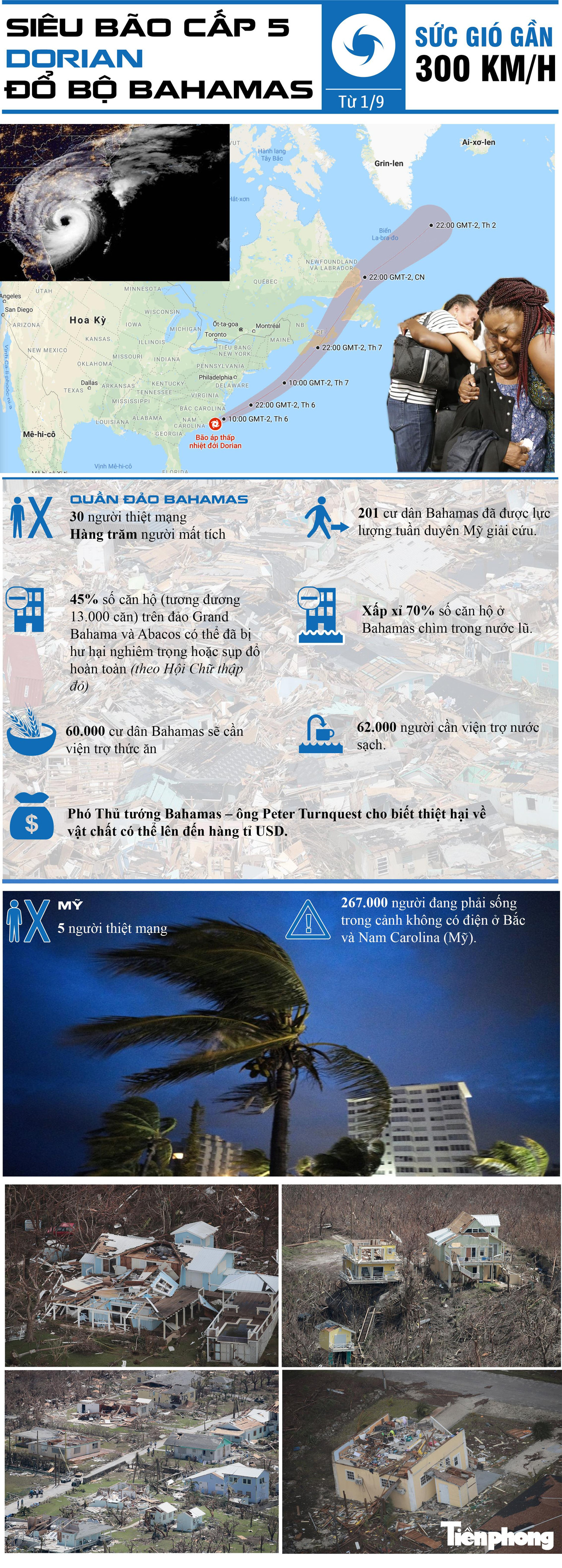 TPO - Thủ tướng Bahamas Hubert Trinis đã gọi Dorian là "thảm hoạ kinh hoàng nhất lịch sử" sau khi siêu bão này càn quét quần đảo nằm trên Đại Tây Dương, khiến ít nhất 30 người chết và hàng trăm người mất tích.