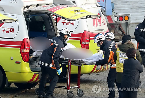 Thi thể các nạn nhân được đưa lên bờ. Ảnh: Yonhap