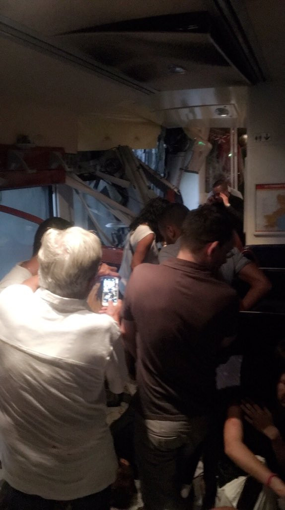Theo kênh truyền hình BFM của Pháp, tàu không bị trật bánh nhưng toa đầu tiên bị hư hại nặng nề khiến ít nhất 10 người bị thương rất nghiêm trọng. Những người bị thương nặng đã được đưa đi cấp cứu bằng trực thăng.
