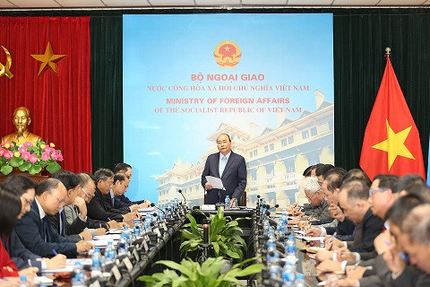 Thủ tướng Nguyễn Xuân Phúc nhấn mạnh, với bề dày kinh nghiệm tổ chức tốt nhiều sự kiện đối ngoại trọng đại của đất nước, Bộ Ngoại giao cần tiếp tục bám sát chỉ đạo của Lãnh đạo cấp cao, huy động toàn bộ hệ thống các đơn vị, cán bộ nhân viên trong Bộ ứng trực 24/24, đảm bảo thông tin thông suốt, đáp ứng tốt nhất đề nghị của các bên liên quan, kể cả những vấn đề phát sinh về lễ tân, hậu cần, thông tin tuyên truyền, thể hiện tinh thần niềm nở, ân cần, mến khách, lan tỏa hình ảnh đẹp về đất nước và con người Việt Nam với thế giới.