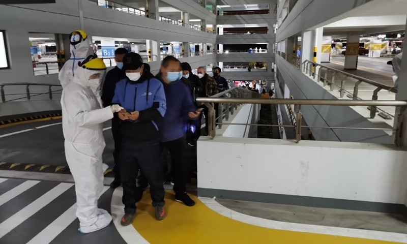 Một trạm xét nghiệm lưu động đã được dựng trong bãi đậu xe của sân bay Phố Đông, và hàng dài nhân viên đã xếp chỗ chờ được xét nghiệm vào đêm Chủ nhật.