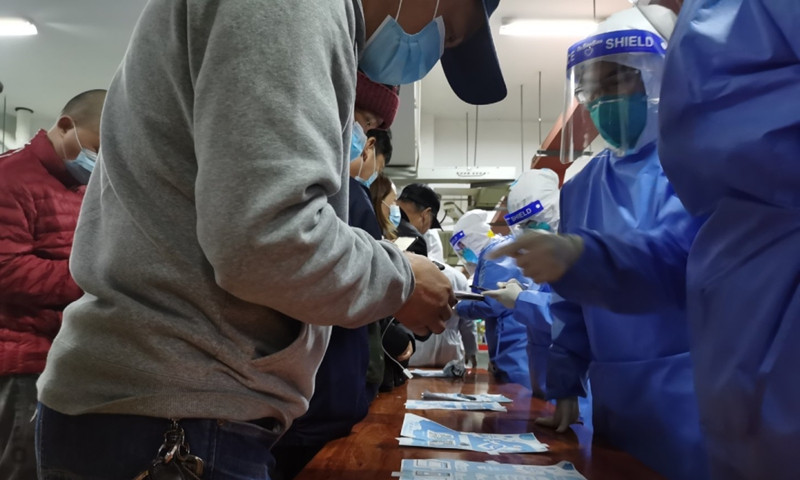 Việc xét nghiệm COVID-19 ở sân bay Phố Đông bắt đầu được tiến hành từ 15h ngày Chủ nhật, sau khi một số nhân viên vận chuyển hàng hóa và những người tiếp xúc gần với họ nhận kết quả dương tính với SARS-CoV-2.