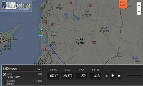 Tại thời điểm bị phát hiện, chiếc Tu-214 R vừa cất cánh từ sân bay Latakia, thực hiện hành trình bay về hướng không phận Nga. Giới chức Thụy Sĩ khẳng định chiếc máy bay trinh sát Nga không có bất cứ mối liên hệ nào với SWISS.