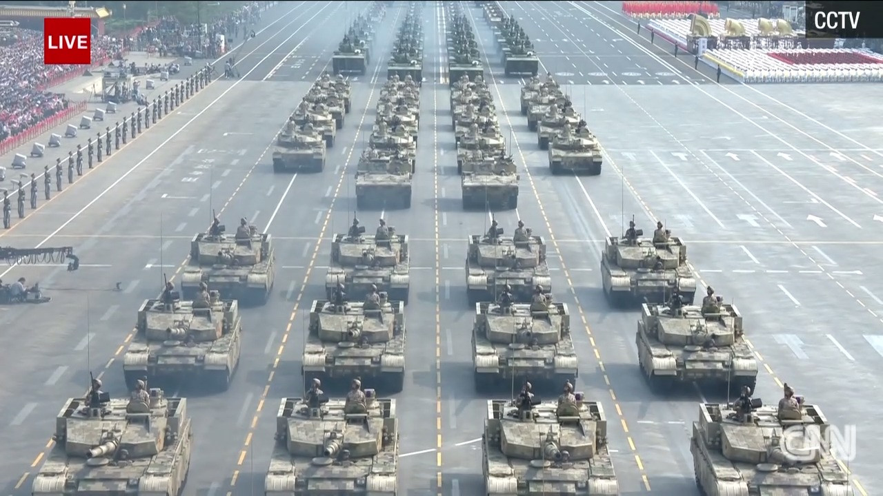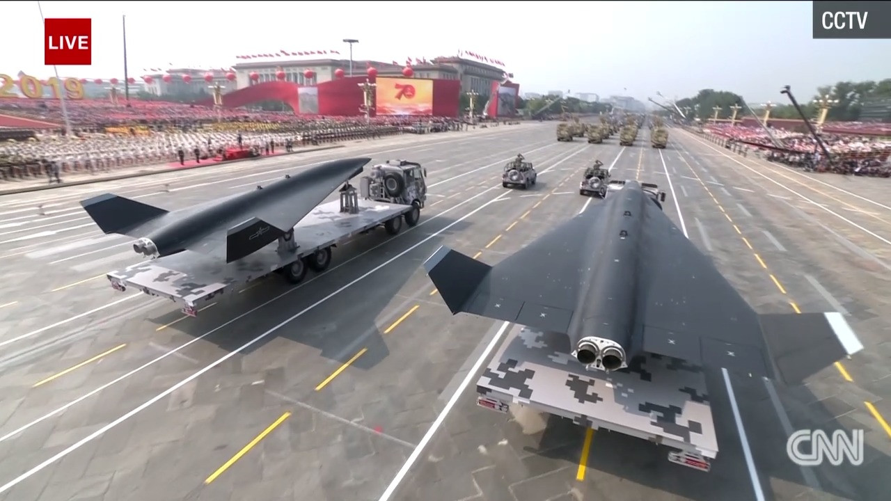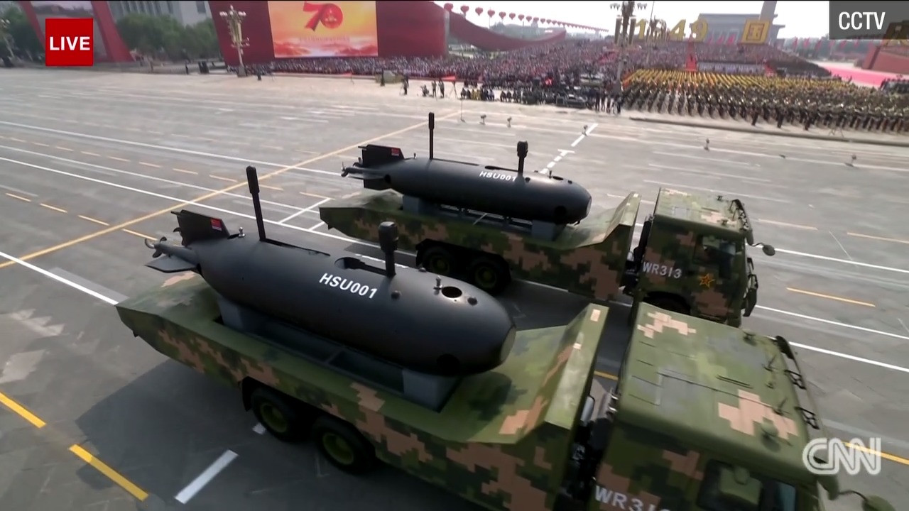 Trong số các khí tài xuất hiện tại lễ duyệt binh, có nhiều vũ khí mới được Bắc Kinh công bố lần đầu, bao gồm tên lửa đạn đạo xuyên lục địa DF-41, máy bay không người lái DR-8, tàu ngầm không người lái… Ảnh: CNN