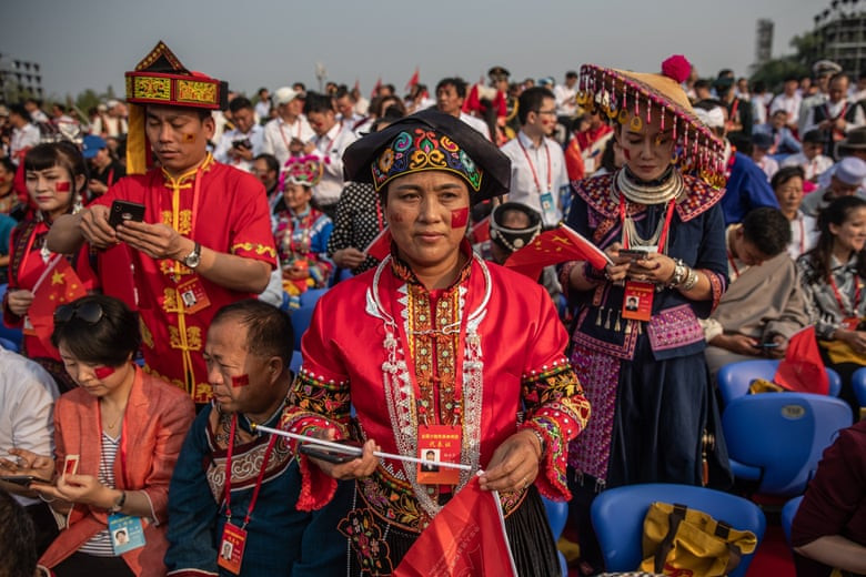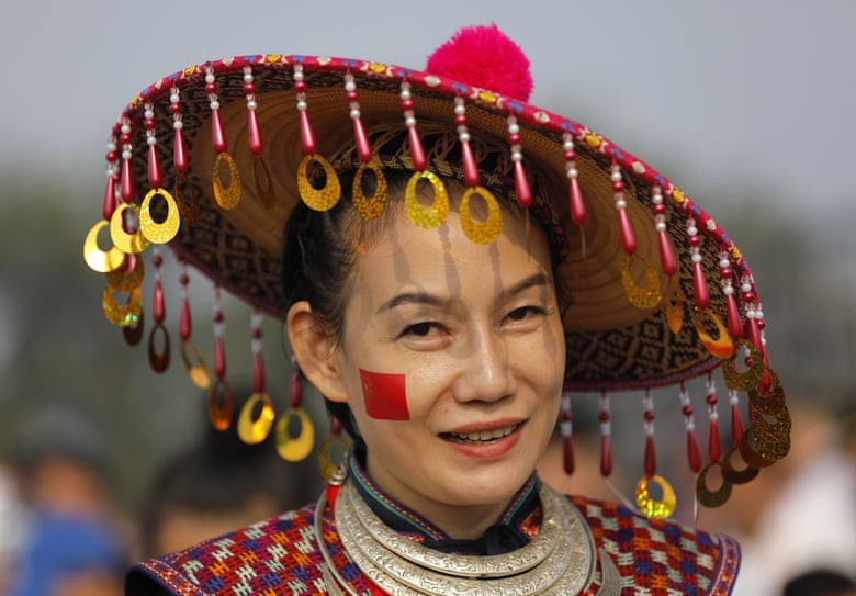 Thành viên 56 dân tộc Trung Quốc tề tựu tại thủ đô Bắc Kinh để tham gia diễu hành trong lễ kỉ niệm. Ảnh: EPA