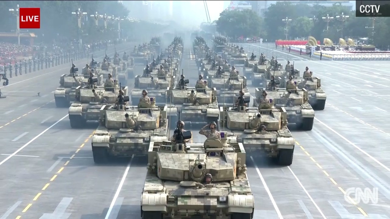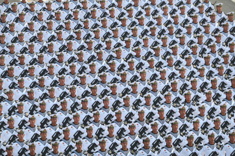 Gần 15.000 binh sĩ chia thành 59 đội hình duyệt binh và 1 đội hình quân nhạc, cùng với hơn 160 máy bay quân sự và 580 khí tài khác được Trung Quốc huy động cho sự kiện đặc biệt này. Ảnh: Tân Hoa Xã