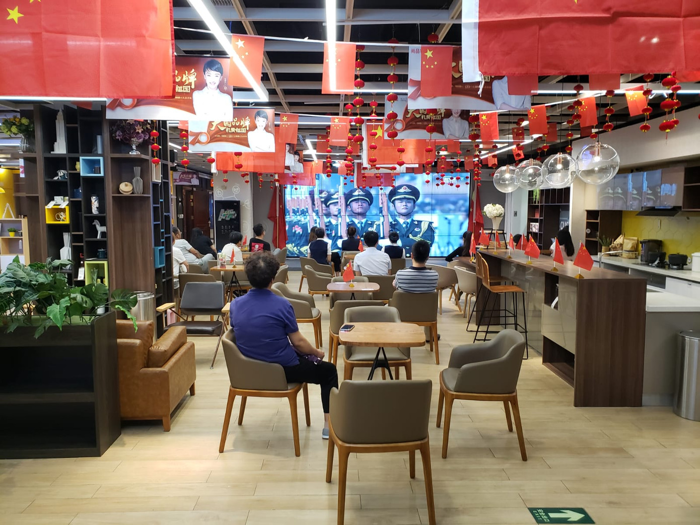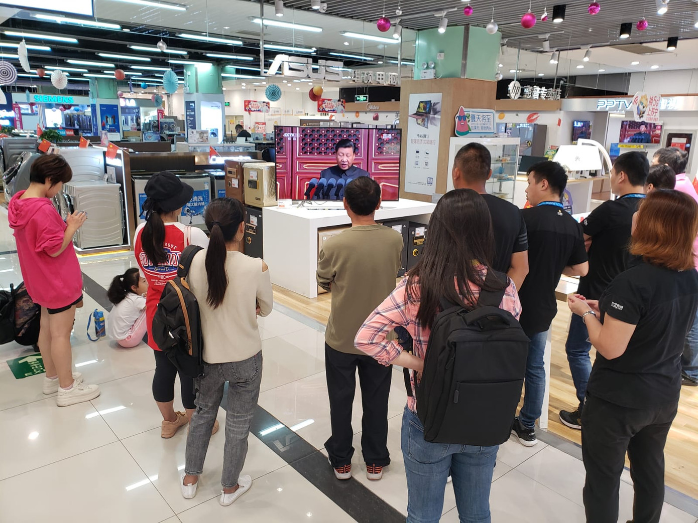Người dân Trung Quốc theo dõi lễ kỉ niệm qua truyền hình. Ảnh: CNN