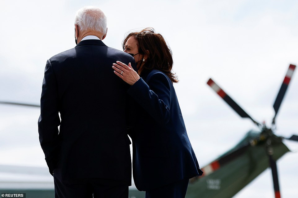 Kết thúc cuộc họp, bà Harris hộ tống ông Biden rời chiếc Không lực Một.