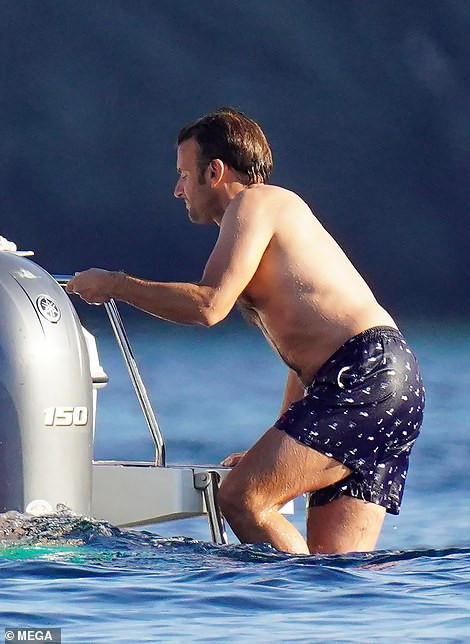 Hình ảnh được đăng tải bởi tờ Daily Mail cho thấy Tổng thống Macron (42 tuổi) hào hứng cưỡi mô tô nước trong khi phu nhân Brigitte (67 tuổi) nằm thư giãn trên du thuyền ngoài khơi đảo Porquerolles trên vùng biển Địa Trung Hải của Pháp.