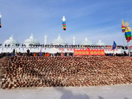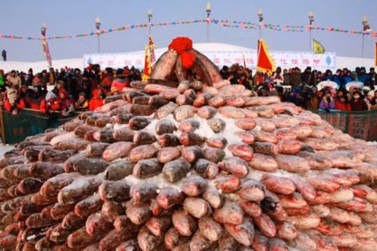 Được biết, hồ Chagan vốn nổi tiếng với lễ hội đánh cá trên băng, được tổ chức thường niên. Phương pháp đánh cá có nguồn gốc từ đời nhà Liêu (916-1125), và lưu truyền cho tới ngày nay. Ảnh: Trung Hoa Nhật báo