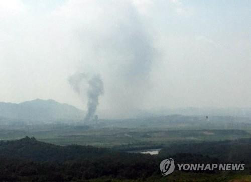 Đoạn video đen trắng được Bộ Quốc phòng Hàn Quốc công bố hôm nay, 16/6, cho thấy một tòa nhà nằm ở thị trấn biên giới Kaesong của Triều Tiên nổ tung, tỏa khói mù mịt. Tòa nhà này được cho là Văn phòng Liên lạc chung giữa Triều Tiên và Hàn Quốc, nằm trong khu công nghiệp Kaesong.