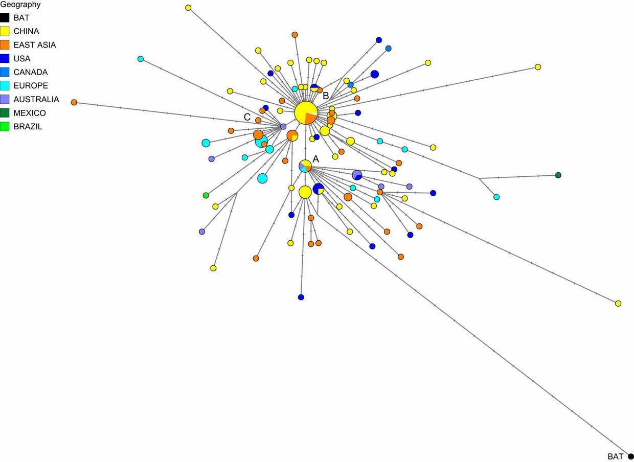 Cho đến ngày 17/1, gần như tất cả các bộ gen virus ở Đông Á đều là loại B. Tuy nhiên, tại Quảng Đông (tỉnh ven biển phía Đông Nam Trung Quốc), có tới 7 trong số 11 bộ gen virus là loại A.