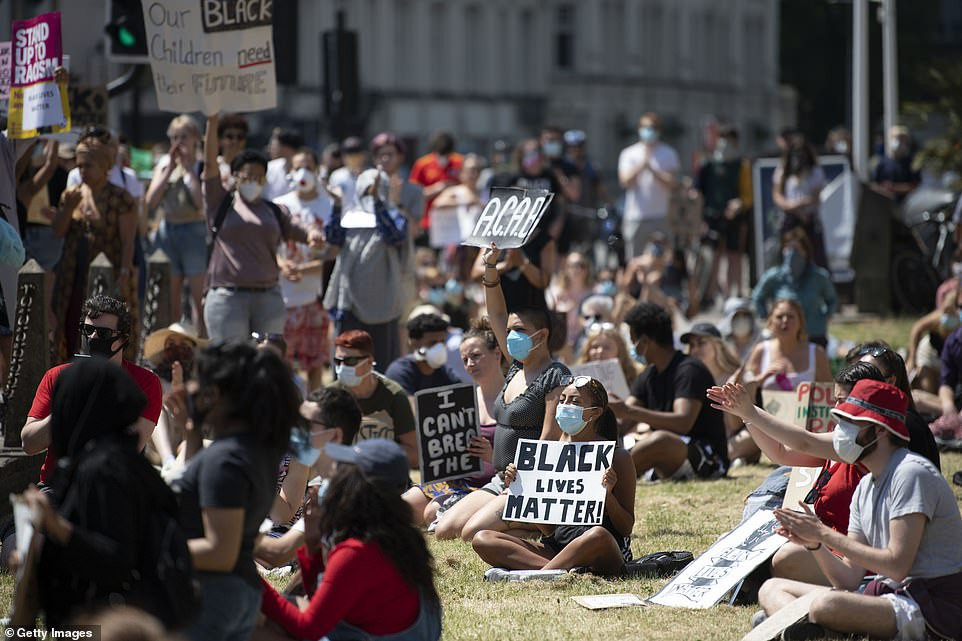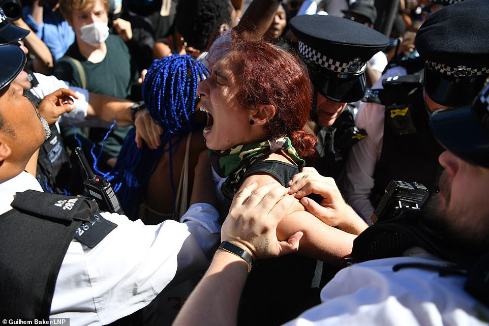 Trước đó, nhóm người biểu tình đã tập trung tại quảng trường trung tâm London từ 8h sáng để thể hiện sự đoàn kết với người dân Mỹ trong vụ George Floyd.