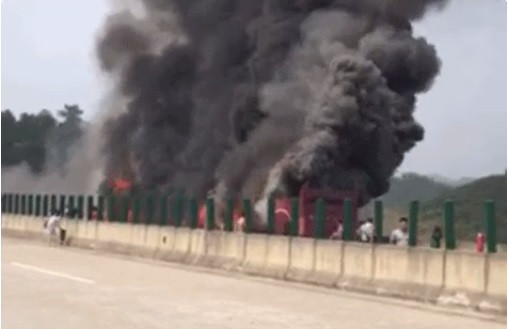 Theo Xinhuanet, từ hình ảnh nhân chứng cung cấp vào sáng 26/6, vụ tai nạn xảy ra trên đường cao tốc thuộc huyện Nghi Chương, tỉnh Hồ Nam.